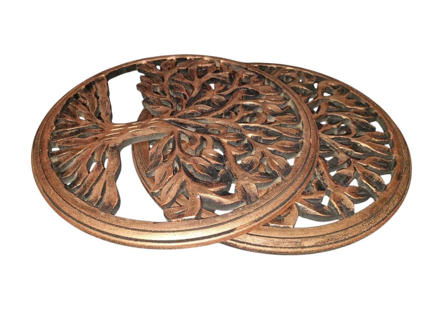 Add depth and meaning to your walls with this Set of 2 Hand Carved Wooden Round Wall Panels featuring the Tree of Life design. Finished in a warm copper tone, these panels symbolize growth, harmony, and connection, making them perfect for enhancing both the beauty and energy of your space.